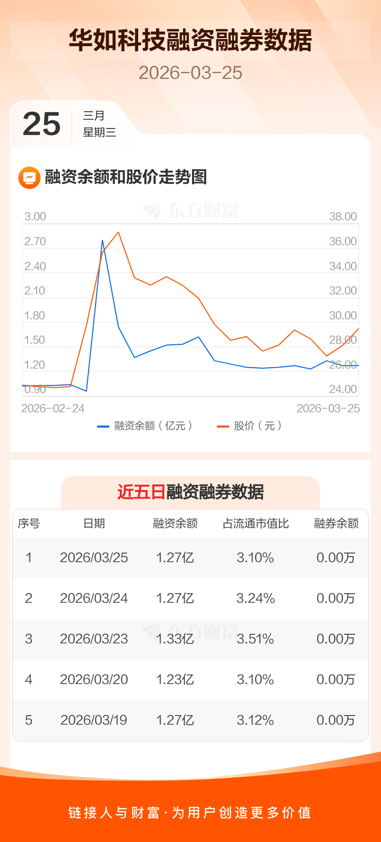 交易所最新数据显示,华如科技于2026年3月25日获融资买入3268.24万元,融资偿还3215.91万元,当日融资净买入52.32万元。目前,该股融资余额1.27亿,占流通市值比例为3.10%。