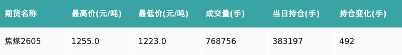 南财智讯3月26日电,盘后期货数据显示,大连商品交易所的焦煤主力合约收跌1.13%,收盘报1230.0元/吨,日内资金流出5623.17万元。其他相关指标见下表: