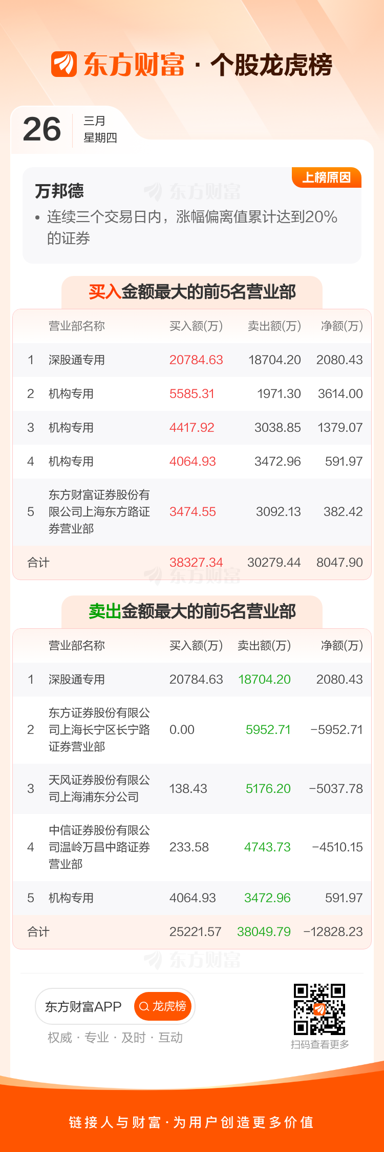 万邦德(002082)龙虎榜数据(03-26)