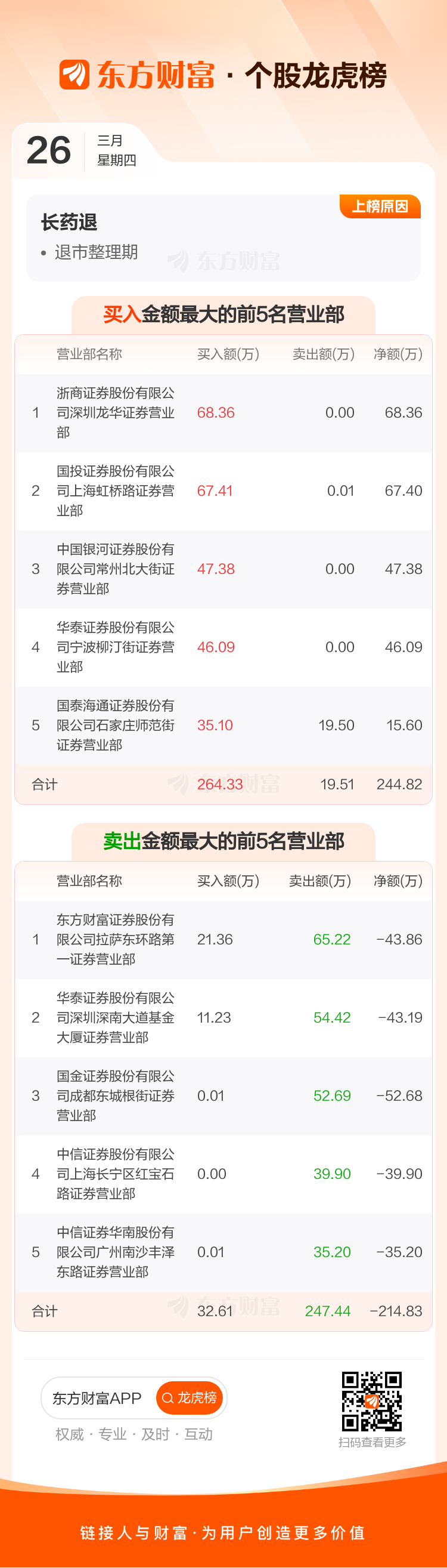 长药退(300391)龙虎榜数据(03-26)