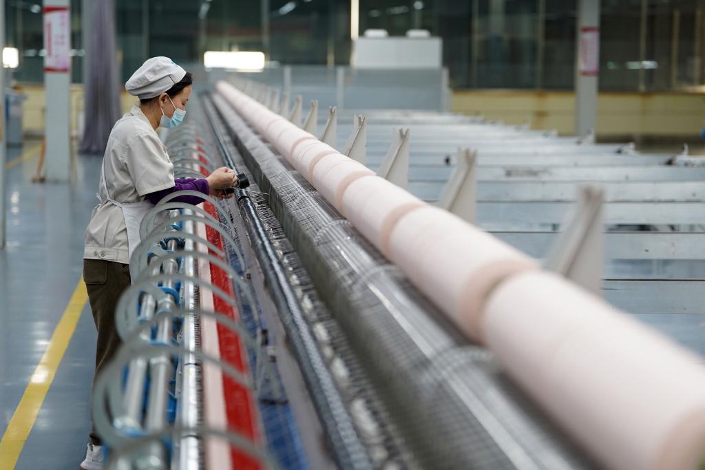 2025年1月18日,河北省邢台市清河县一家羊绒制品生产企业的员工在羊绒纱线生产车间内工作。新华社记者牟宇摄