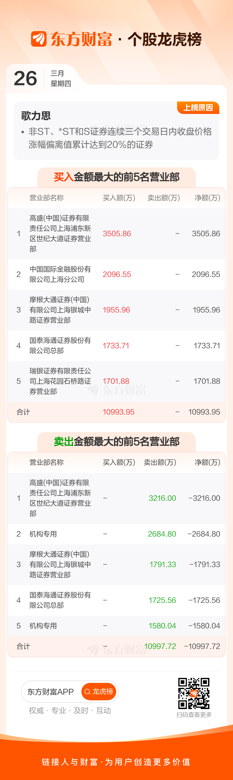 歌力思(603808)龙虎榜数据(03-26)