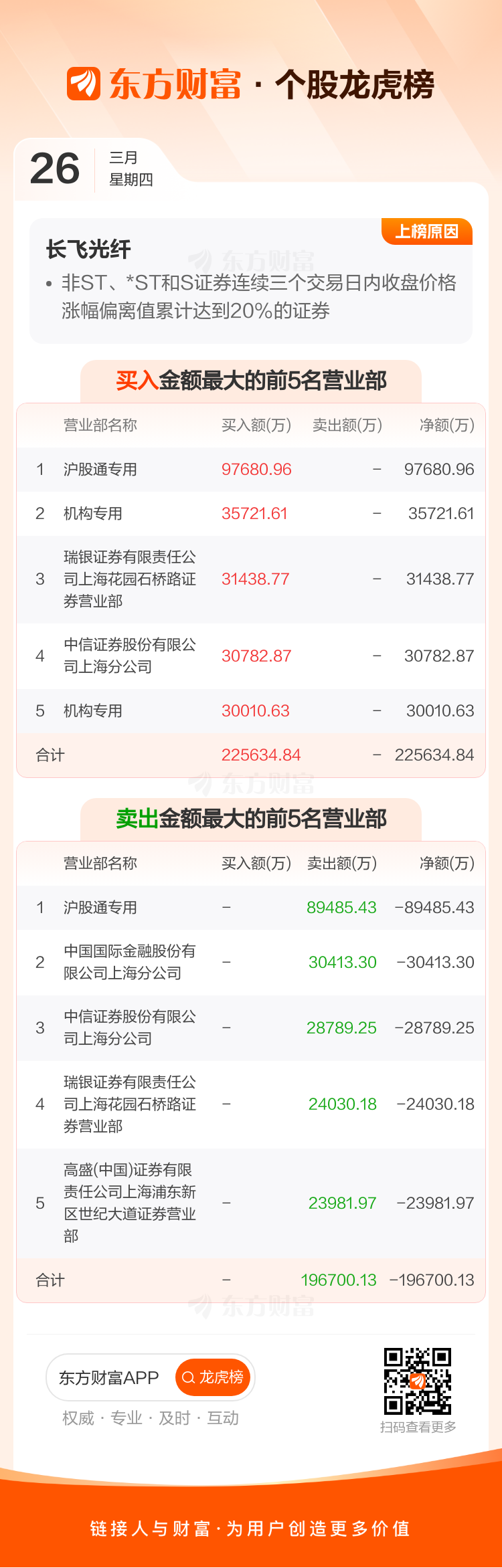 长飞光纤(601869)龙虎榜数据(03-26)