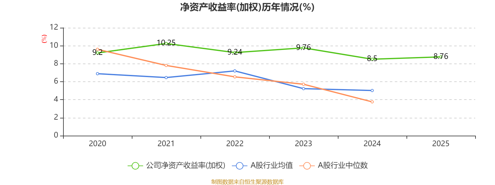 数据显示,2025年公司平均净资产收益率为8.76%,较上年同期上升0.26个百分点。