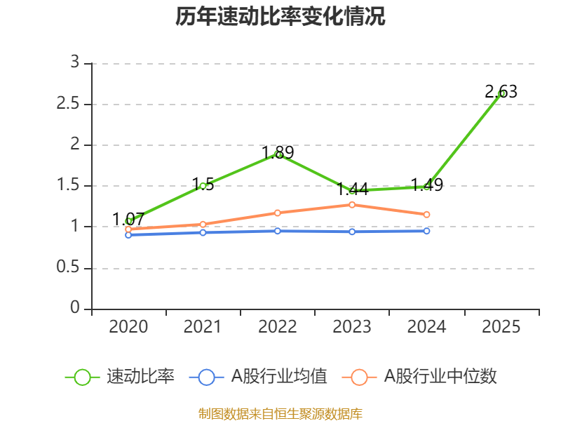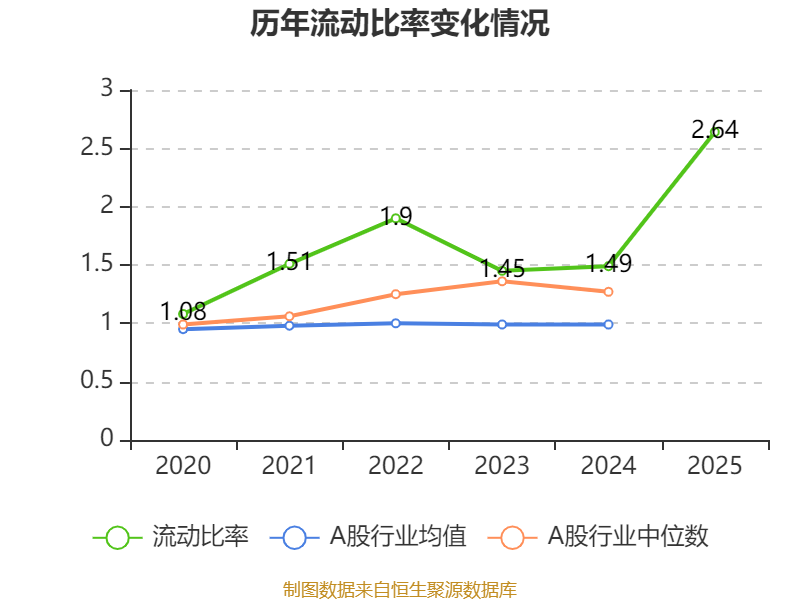 2025年,公司流动比率为2.64,速动比率为2.63。
