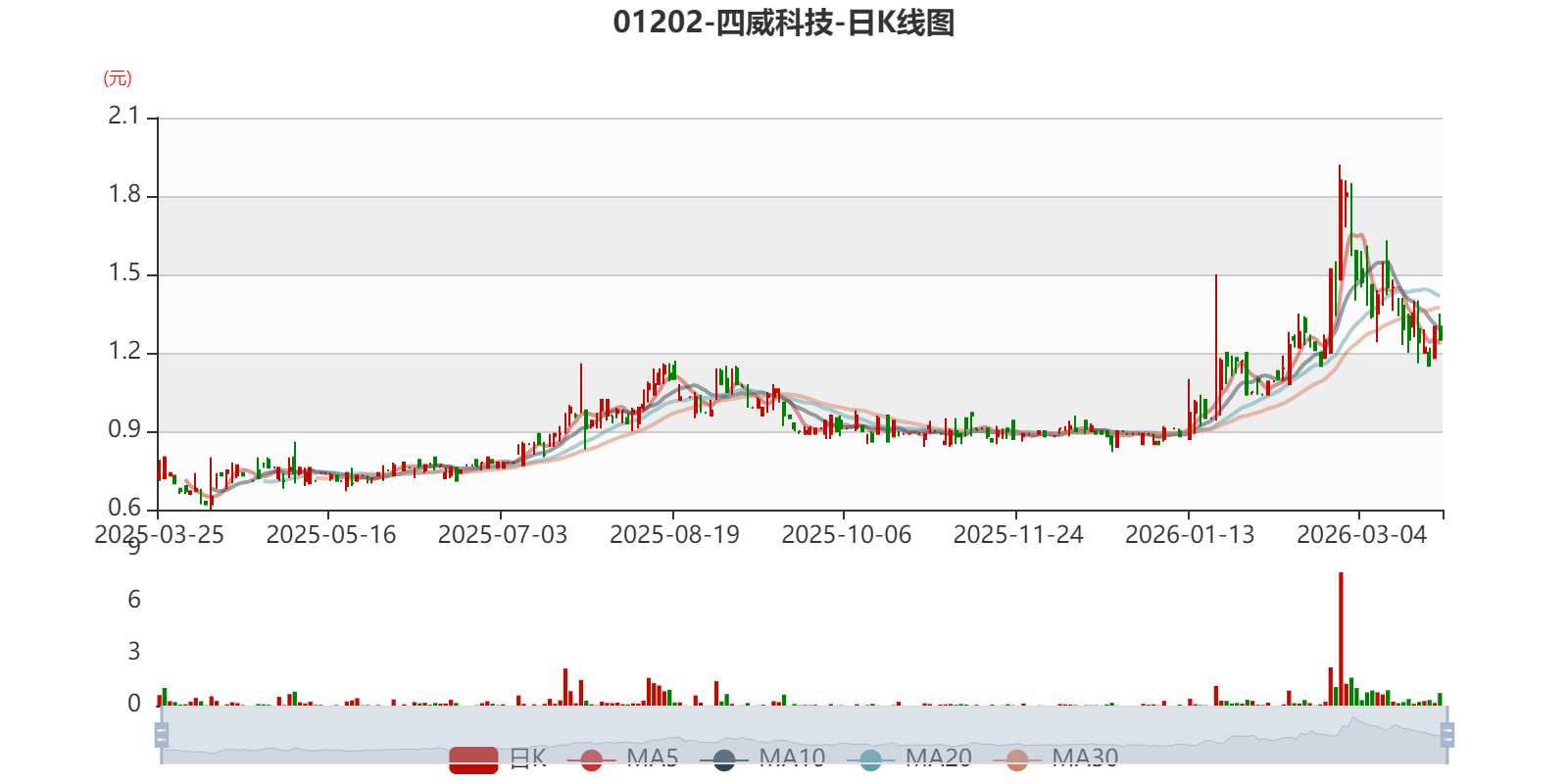 以3月25日收盘价计算,四威科技目前市净率(TTM)约0.58倍,市销率(TTM)约1.52倍。