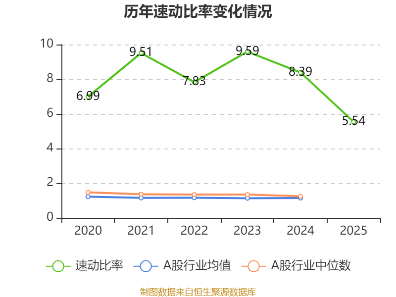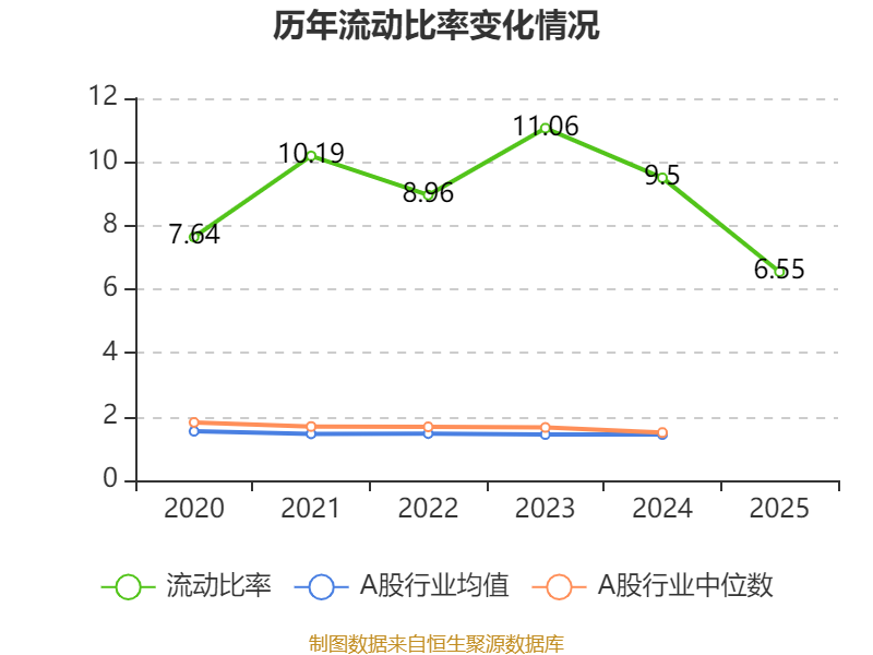 2025年,公司流动比率为6.55,速动比率为5.54。