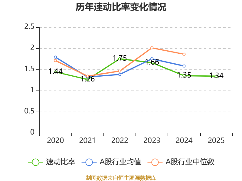 2025年,公司流动比率为1.80,速动比率为1.34。