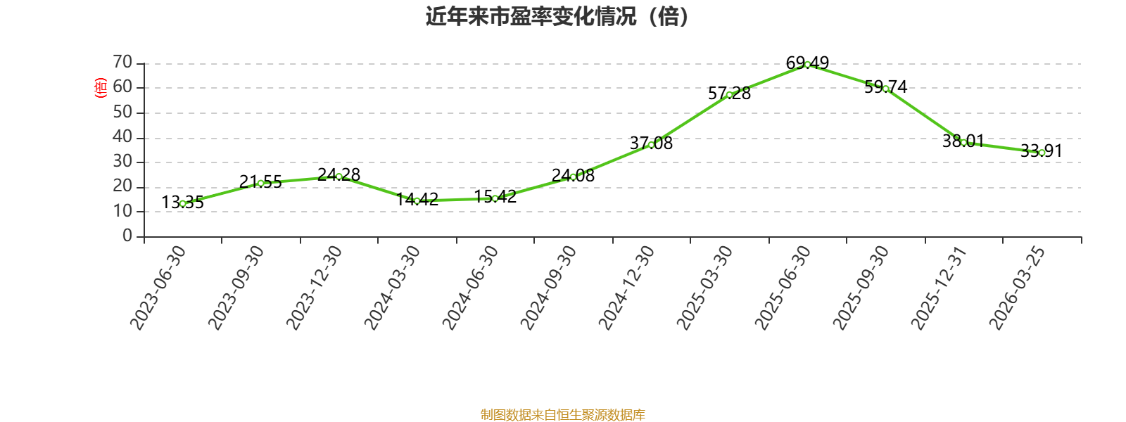 以3月25日收盘价计算,金力永磁目前市盈率(TTM)约33.91倍,市净率(TTM)约3.24倍,市销率(TTM)约3.1倍。