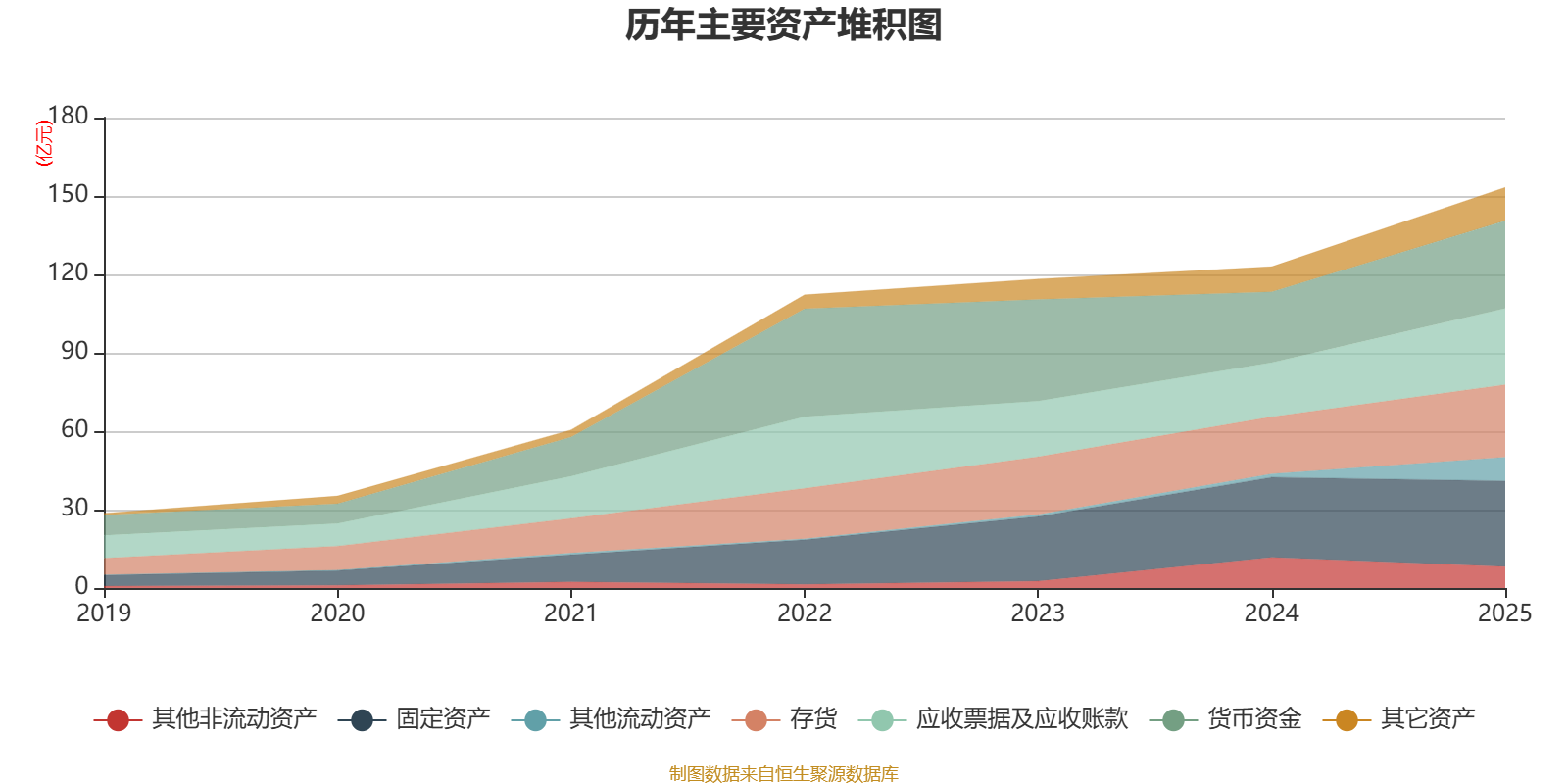 资产重大变化方面,截至2025年末,公司其他流动资产较上期末增加604.15%,占公司总资产比重上升4.88个百分点;其他非流动资产较上期末减少30.31%,占公司总资产比重下降4.2个百分点;固定资产较上期末增加6.88%,占公司总资产比重下降3.56个百分点;应收票据及应收账款较上期末增加40.65%,占公司总资产比重上升2.16个百分点。