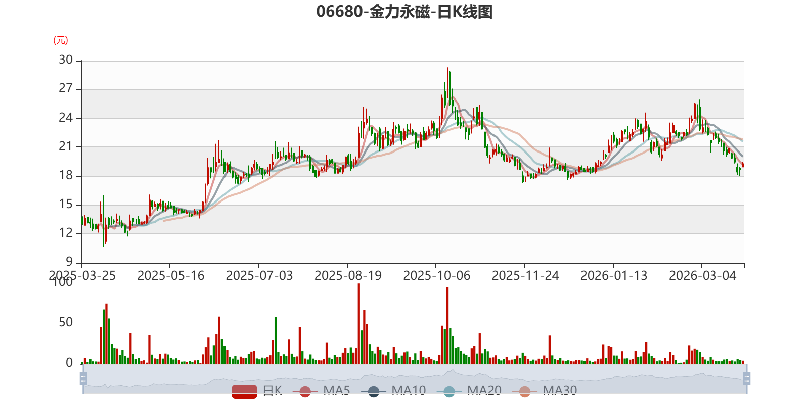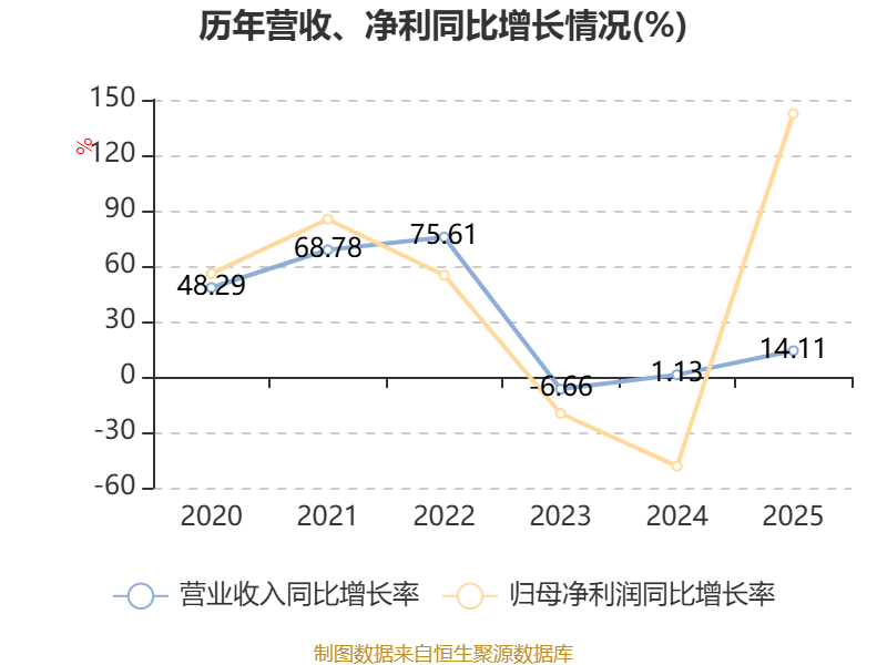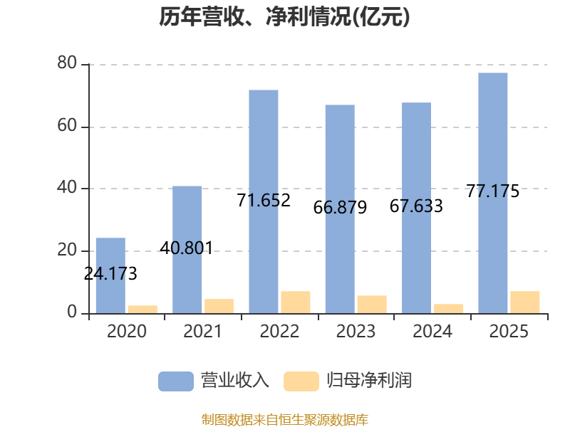 中证智能财讯金力永磁(06680)3月25日披露2025年度报告。报告期内,公司实现营业收入77.18亿元,同比增长14.11%;归母净利润7.06亿元,同比增长142.44%;经营活动产生的现金流量净额为3.53亿元,同比下降30.5%;据报告显示,金力永磁基本每股收益为0.52元,平均净资产收益率为9.8%。