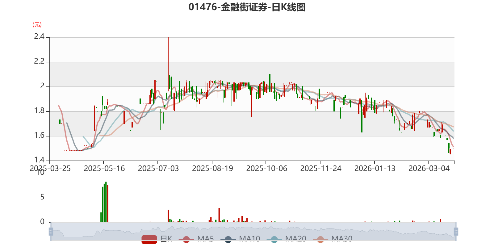 以3月25日收盘价计算,金融街证券目前市盈率(TTM)约9.81倍,市净率(TTM)约0.42倍,市销率(TTM)约1.09倍。