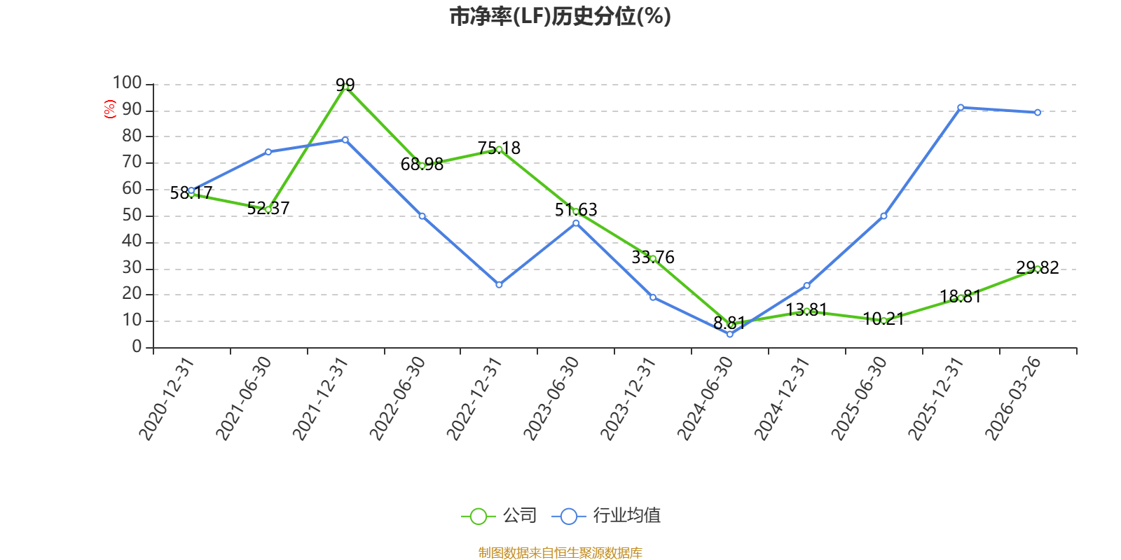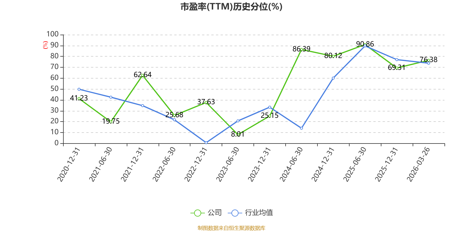 市盈率、市净率为负时,不显示当期分位数,会导致折线图中断。
