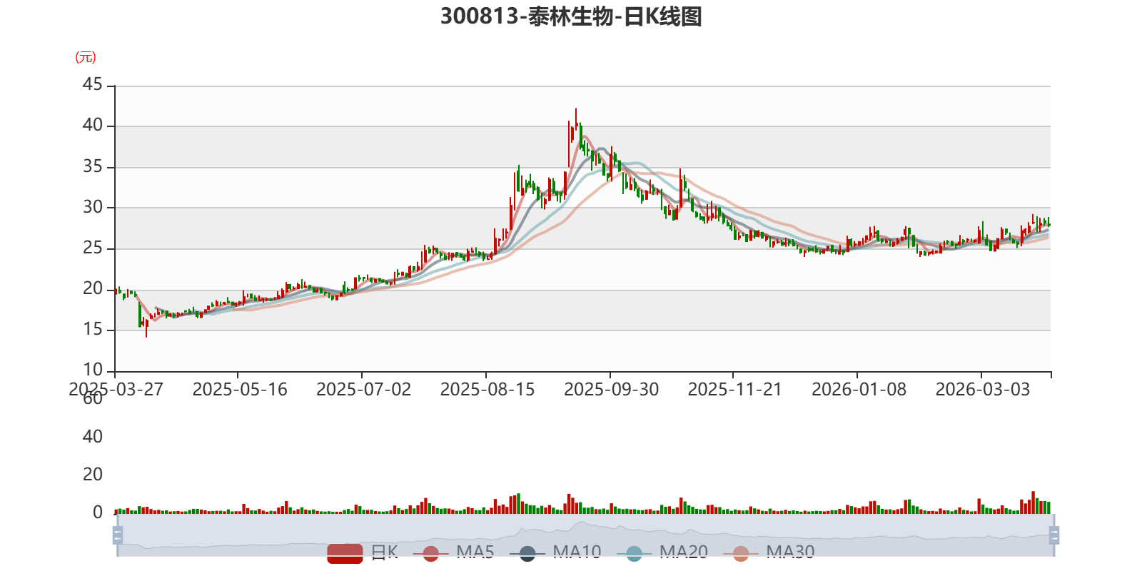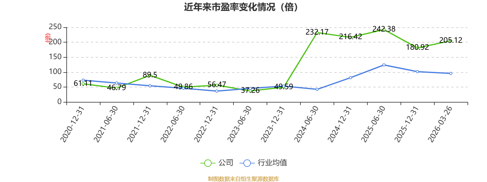 以3月26日收盘价计算,泰林生物目前市盈率(TTM)约为205.12倍,市净率(LF)约4.2倍,市销率(TTM)约9.96倍。