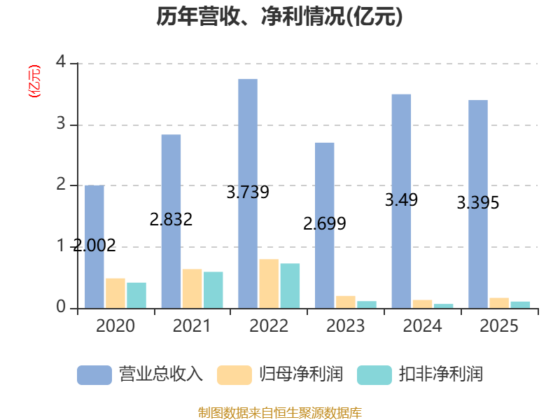 中证智能财讯泰林生物(300813)3月27日披露2025年年度报告。2025年,公司实现营业总收入3.4亿元,同比下降2.71%;归母净利润1648.54万元,同比增长26.32%;扣非净利润1052.76万元,同比增长57.60%;经营活动产生的现金流量净额为4772.2万元,同比增长93.55%;报告期内,泰林生物基本每股收益为0.14元,加权平均净资产收益率为2.03%。公司2025年度分配预案为:拟向全体股东每10股派现0.3元(含税)。
