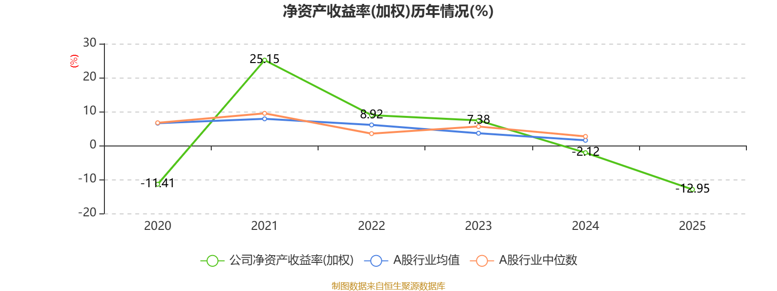 数据显示,2025年公司平均净资产收益率为-12.95%,较上年同期下降10.83个百分点。