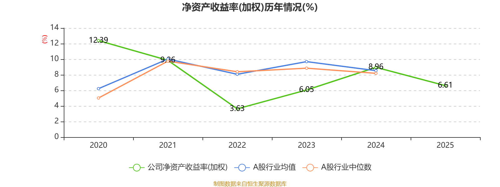 数据显示,2025年公司平均净资产收益率为6.61%,较上年同期下降2.35个百分点。