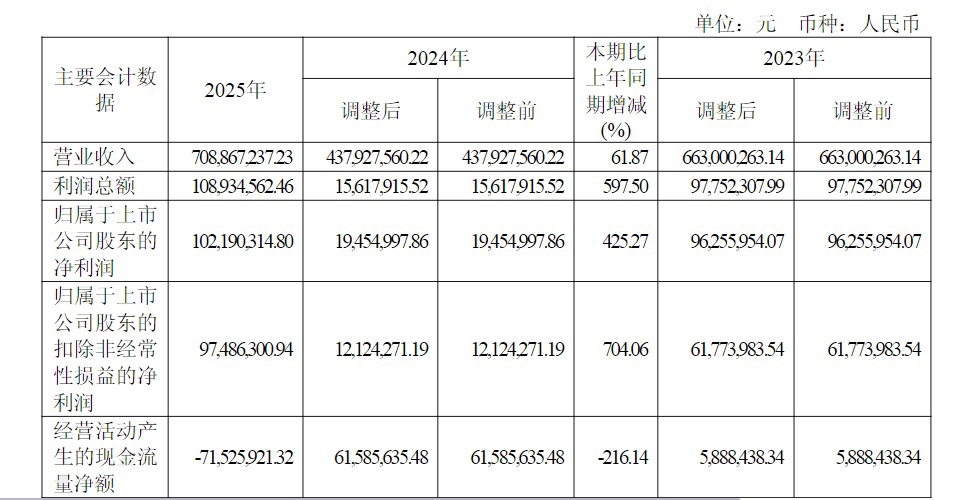 3月25日盘后,智明达发布的2025年年报显示,公司全年实现营业收入7.09亿元,同比增长61.87%;实现净利润1.02亿元,同比增长425.27%;实现扣非后净利润9748.63万元,同比增长704.06%;基本每股收益为0.61元。同时,公司拟向全体股东每10股派发现金红利1.00元(含税)。