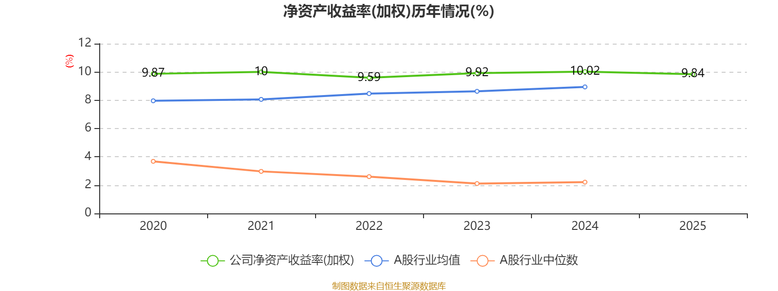 数据显示,2025年公司平均净资产收益率为9.84%,较上年同期下降0.18个百分点。