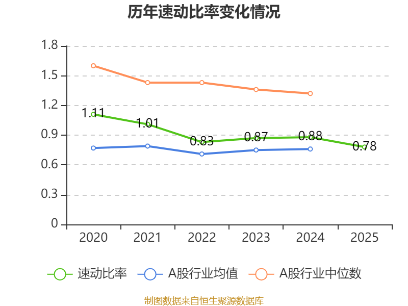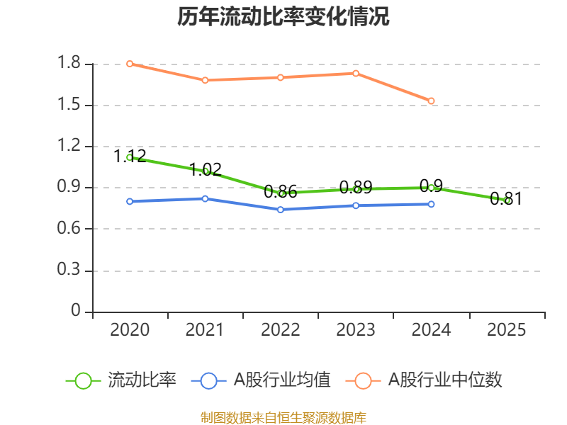 2025年,公司流动比率为0.81,速动比率为0.78。