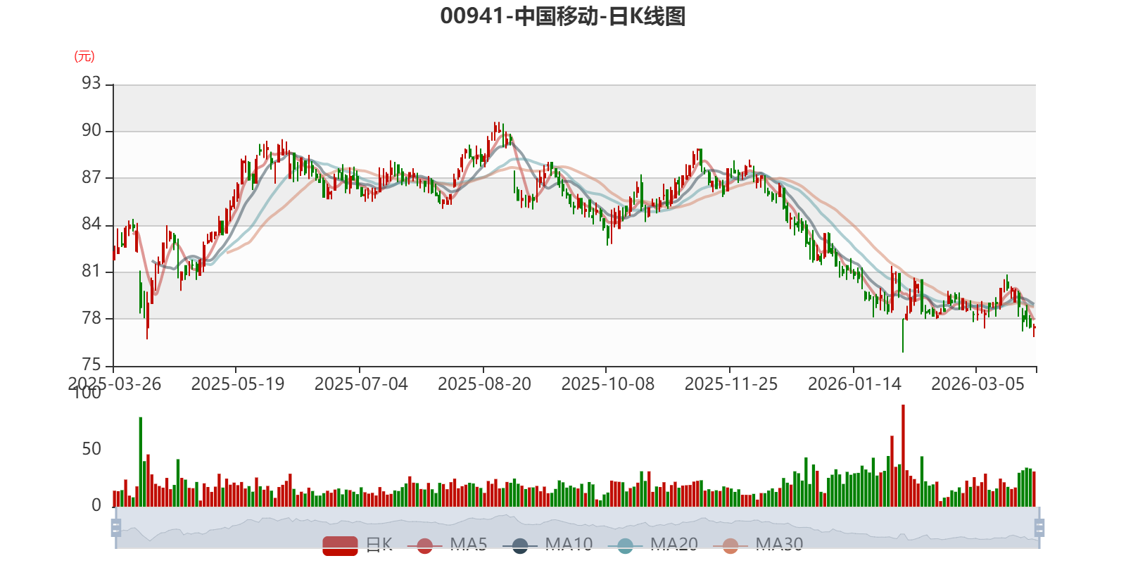 以3月26日收盘价计算,中国移动目前市盈率(TTM)约10.73倍,市净率(TTM)约1.09倍,市销率(TTM)约1.47倍。