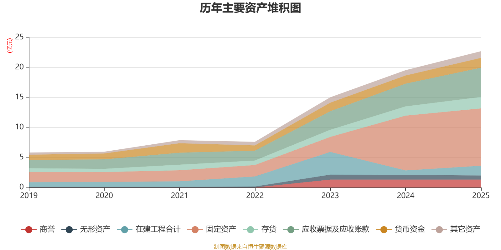 资产重大变化方面,截至2025年末,公司固定资产较上年末增加4.71%,占公司总资产比重下降4.6个百分点;在建工程合计较上年末增加118.3%,占公司总资产比重上升3.35个百分点;应收票据及应收账款较上年末增加28.09%,占公司总资产比重上升2个百分点;无形资产较上年末减少13.02%,占公司总资产比重下降1个百分点。