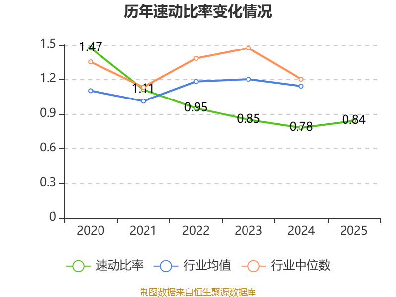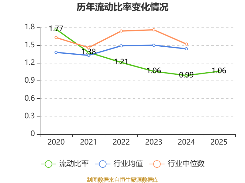 2025年,公司流动比率为1.06,速动比率为0.84。