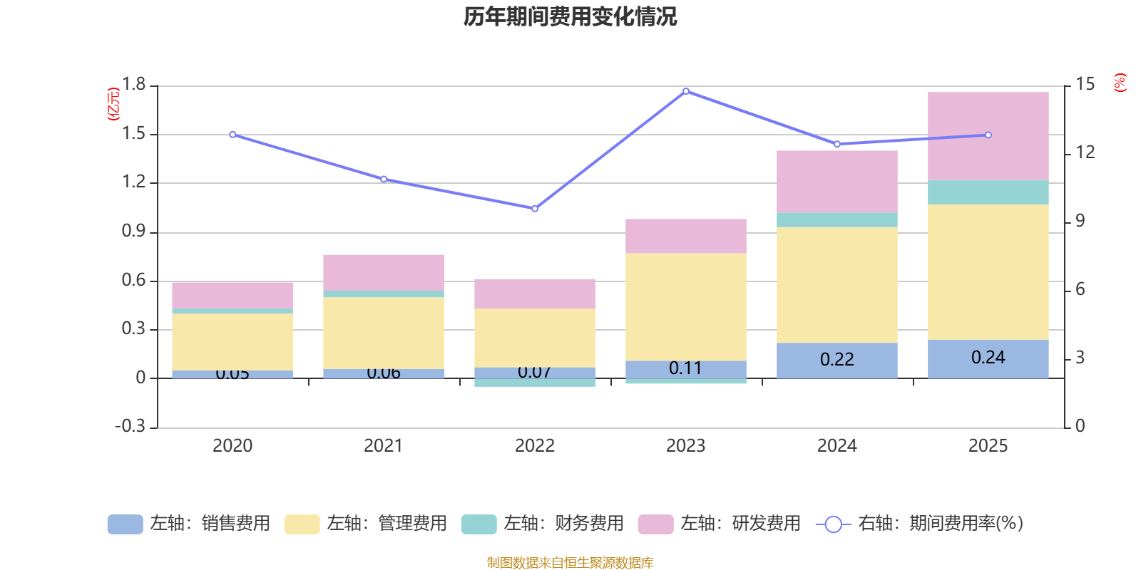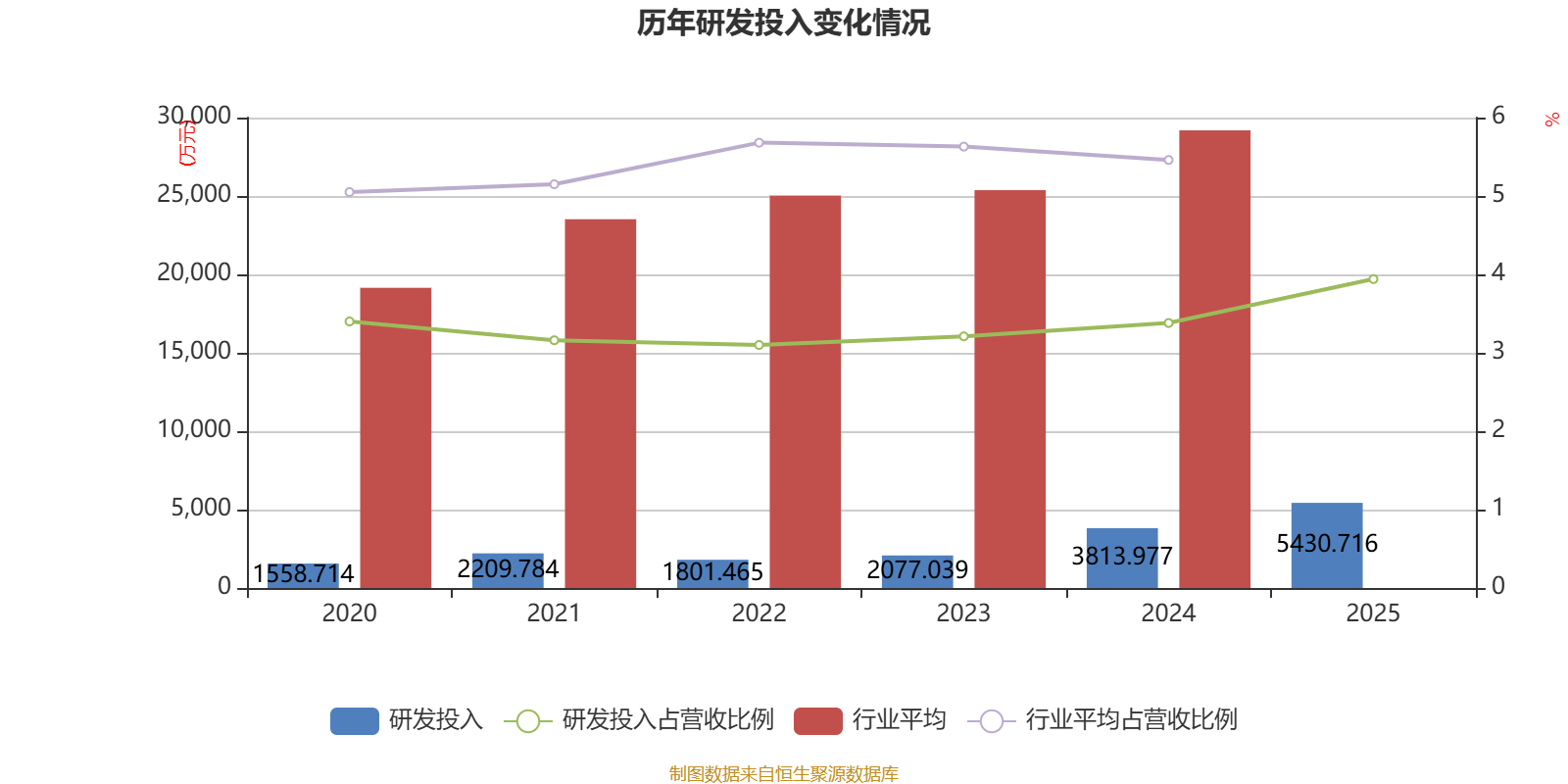 2025年全年,公司研发投入金额为5430.72万元,同比增长42.39%;研发投入占营业收入比例为3.94%,相比上年同期上升0.56个百分点。此外,公司全年研发投入资本化率为0%。