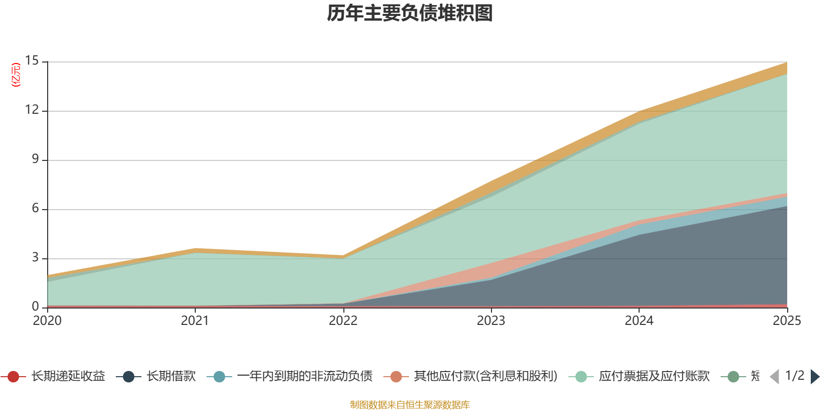 负债重大变化方面,截至2025年末,公司长期借款较上年末增加38.28%,占公司总资产比重上升4.22个百分点;应付票据及应付账款较上年末增加23.54%,占公司总资产比重上升1.92个百分点;一年内到期的非流动负债较上年末减少9.54%,占公司总资产比重下降0.71个百分点;短期借款较上年末减少100%,占公司总资产比重下降0.63个百分点。