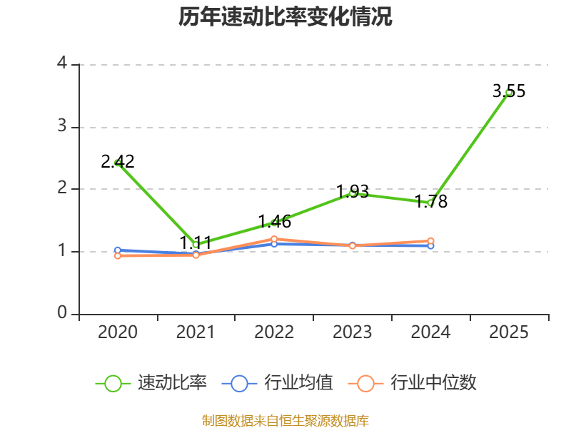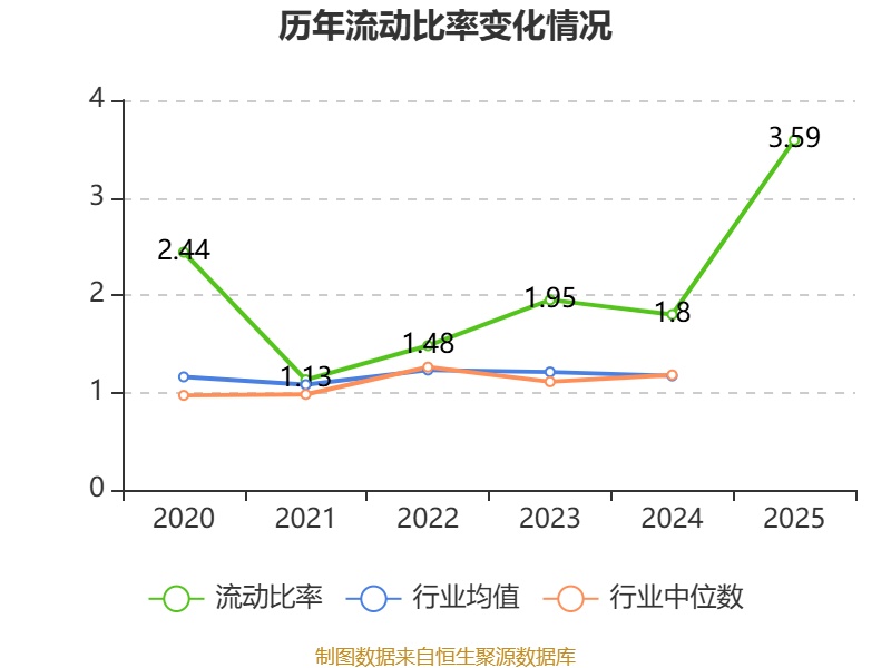 2025年,公司流动比率为3.59,速动比率为3.55。