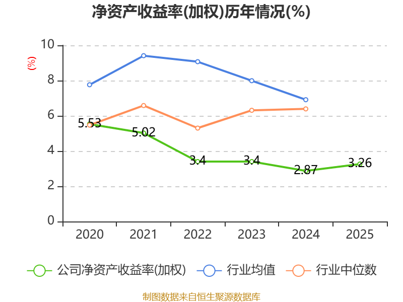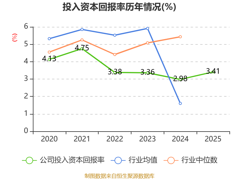 数据显示,2025年公司加权平均净资产收益率为3.26%,较上年同期上升0.39个百分点。公司2025年投入资本回报率为3.41%,较上年同期上升0.43个百分点。