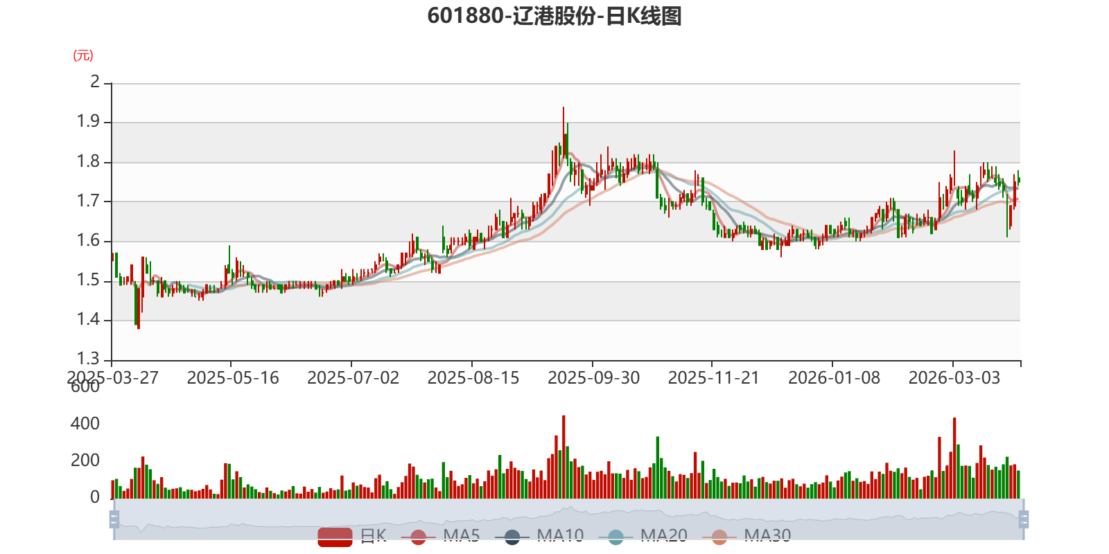 以3月26日收盘价计算,辽港股份目前市盈率(TTM)约为31.57倍,市净率(LF)约1.02倍,市销率(TTM)约3.63倍。