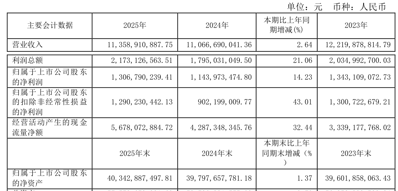 年报显示,2025年末的公司十大流通股东中,新进股东为华夏国证自由现金流交易型开放式指数证券投资基金,取代了三季度末的张凤桐。在具体持股比例上,香港中央结算(代理人)有限公司(H股)、香港中央结算有限公司(A股)、中证500交易型开放式指数证券投资基金持股有所下降。