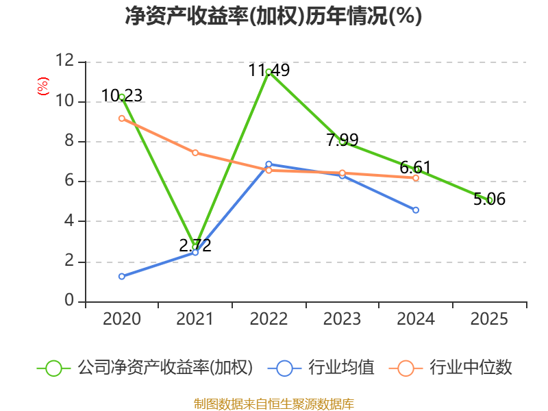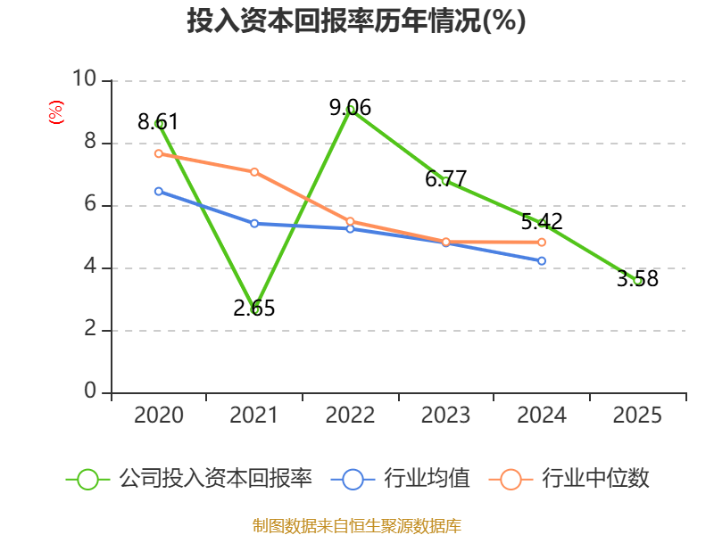 数据显示,2025年公司加权平均净资产收益率为5.06%,较上年同期下降1.55个百分点。公司2025年投入资本回报率为3.58%,较上年同期下降1.84个百分点。
