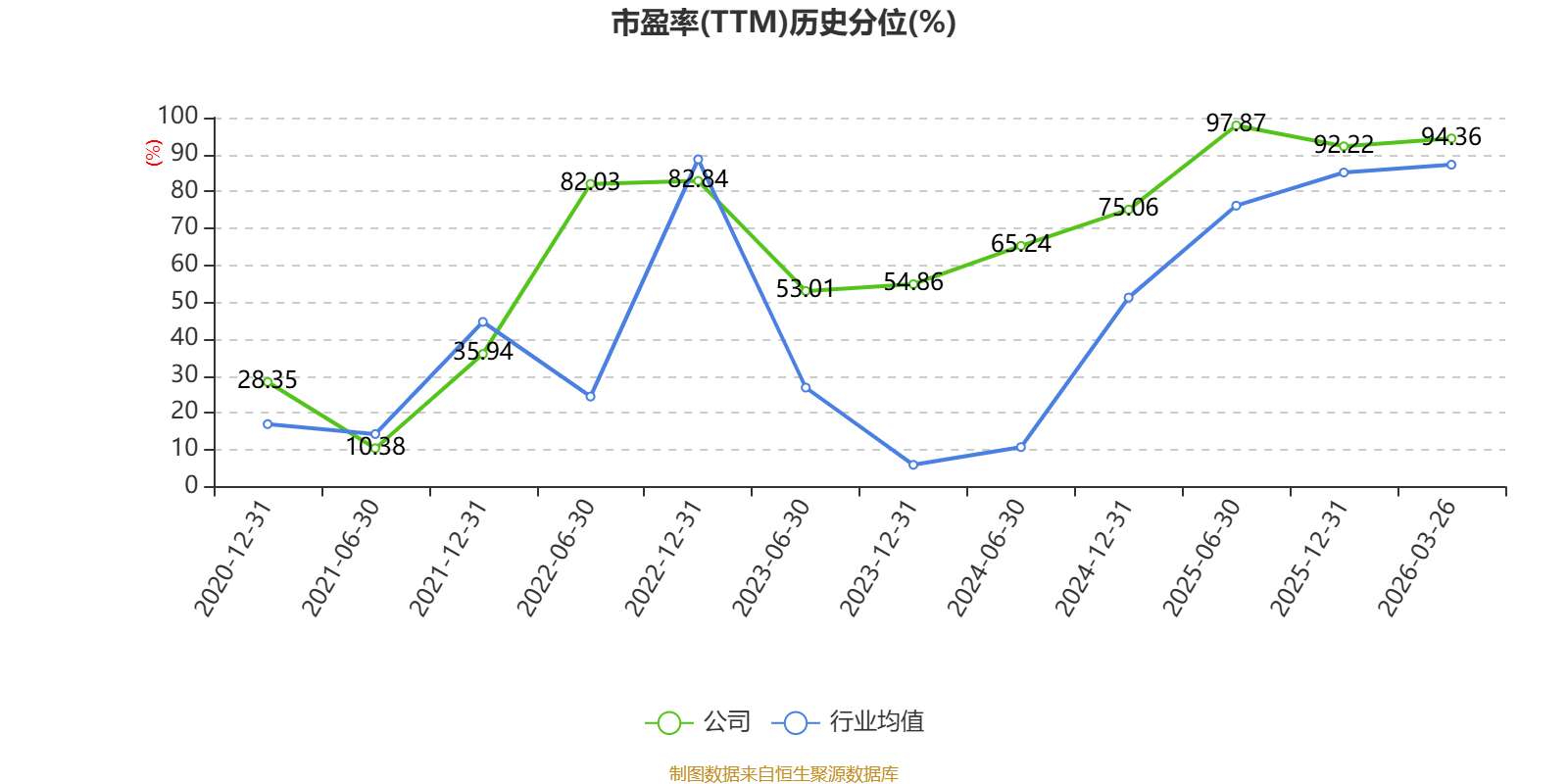 市盈率、市净率为负时,不显示当期分位数,会导致折线图中断。