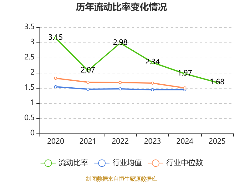 2025年,公司流动比率为1.68,速动比率为1.35。