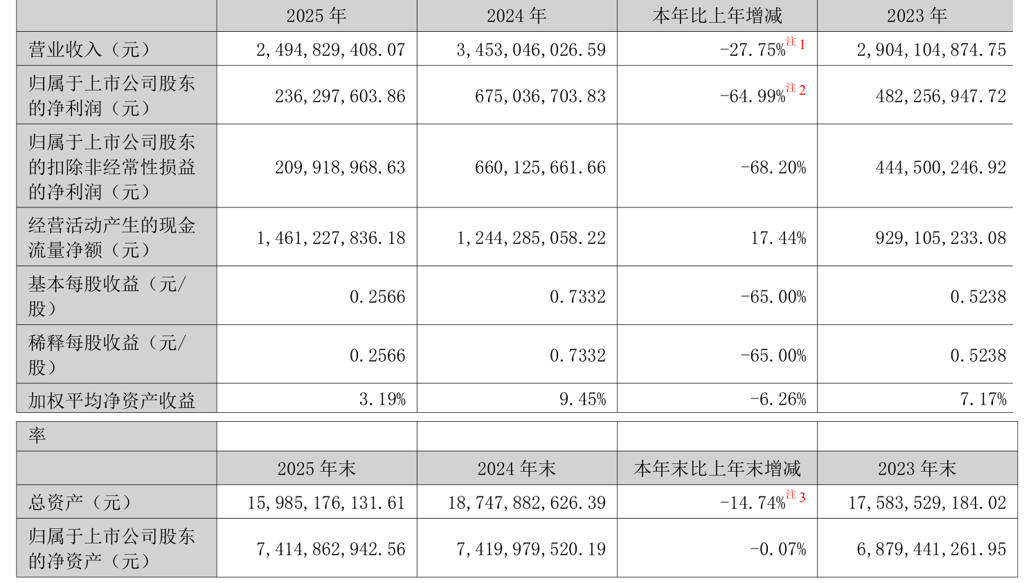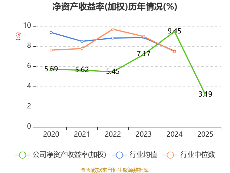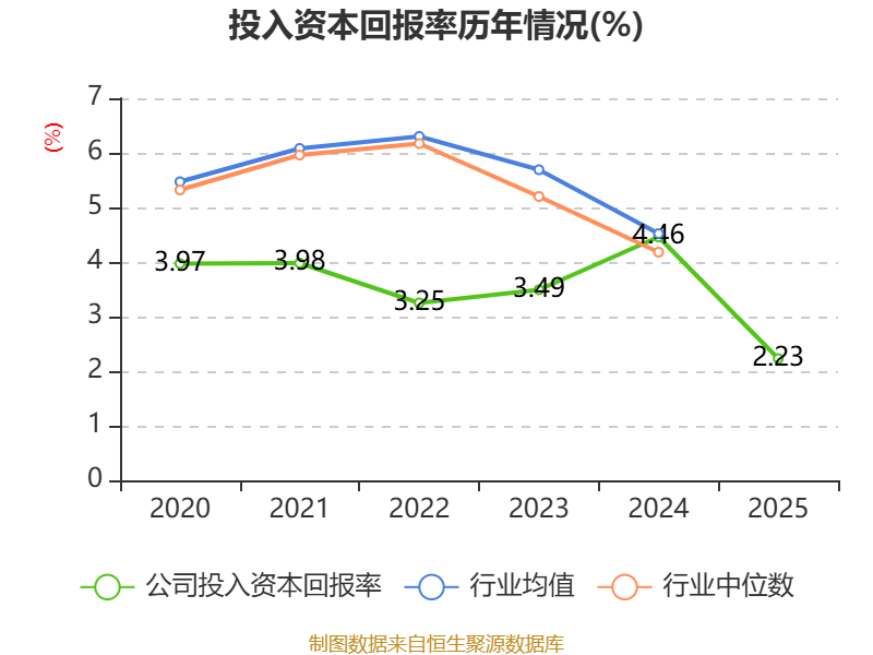 数据显示,2025年公司加权平均净资产收益率为3.19%,较上年同期下降6.26个百分点。公司2025年投入资本回报率为2.23%,较上年同期下降2.23个百分点。