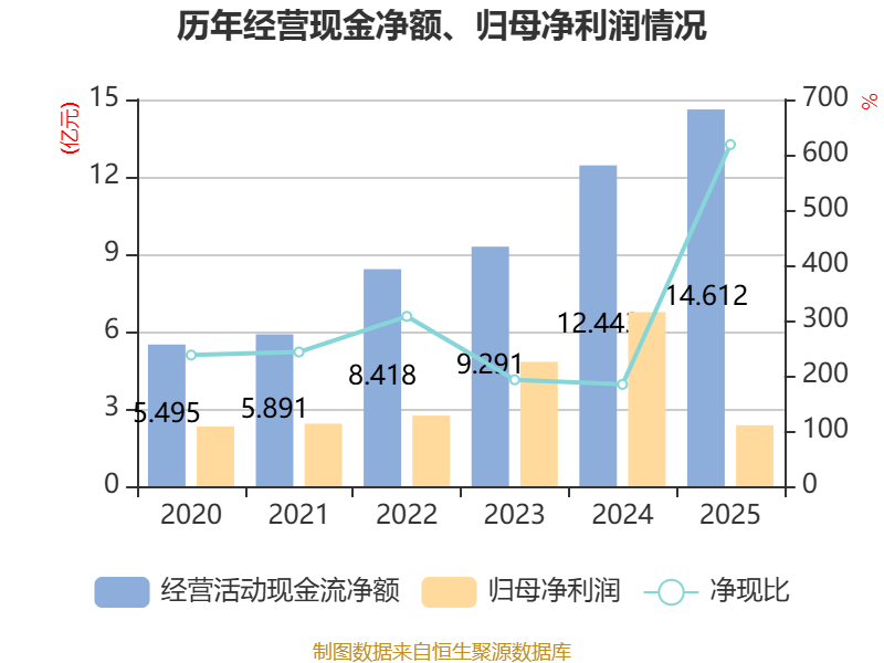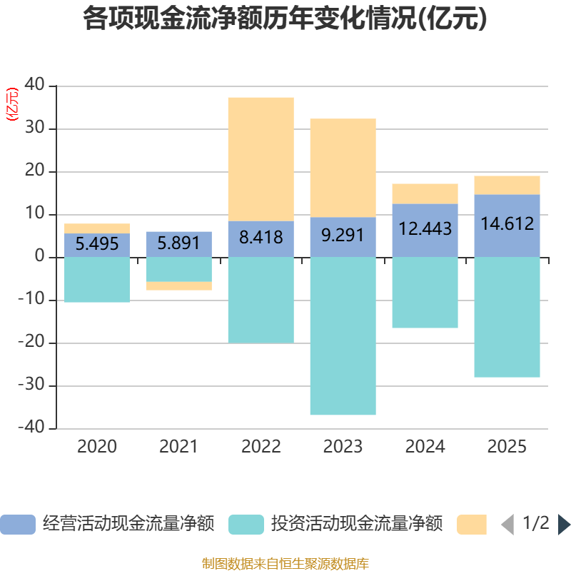 截至2025年,公司经营活动现金流净额为14.61亿元,同比增长17.44%;筹资活动现金流净额4.3亿元,同比减少3331.68万元;投资活动现金流净额-28.11亿元,上年同期为-16.58亿元。
