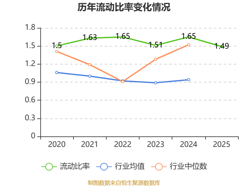 2025年,公司流动比率为1.49,速动比率为1.46。