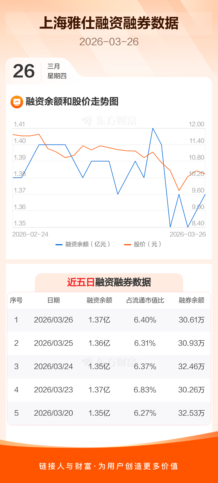 交易所最新数据显示,上海雅仕于2026年3月26日获融资买入253.75万元,融资偿还210.19万元,当日融资净买入43.56万元。目前,该股融资余额1.37亿,占流通市值比例为6.40%。