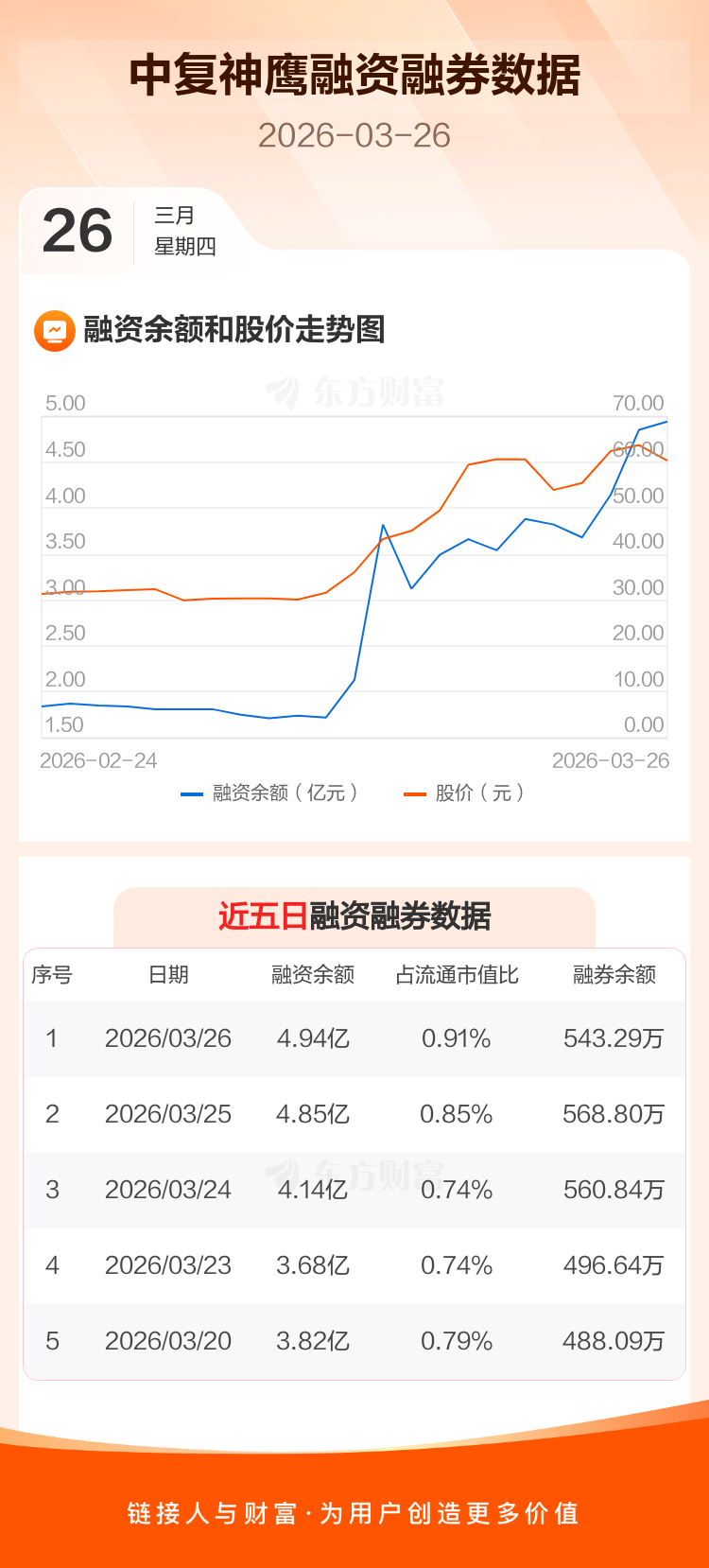 交易所最新数据显示,中复神鹰于2026年3月26日获融资买入1.53亿元,融资偿还1.44亿元,当日融资净买入916.11万元。目前,该股融资余额4.94亿,占流通市值比例为0.91%。