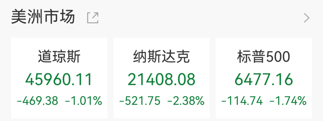 周四(3月26日),欧美股市集体收跌。其中纳指跌超2%,日内跌超500点标普500指数跌超1.7%跌破6500点,创去年9月初以来的新低;英国富时100指数、德国DAX指数、道指均跌超1%。