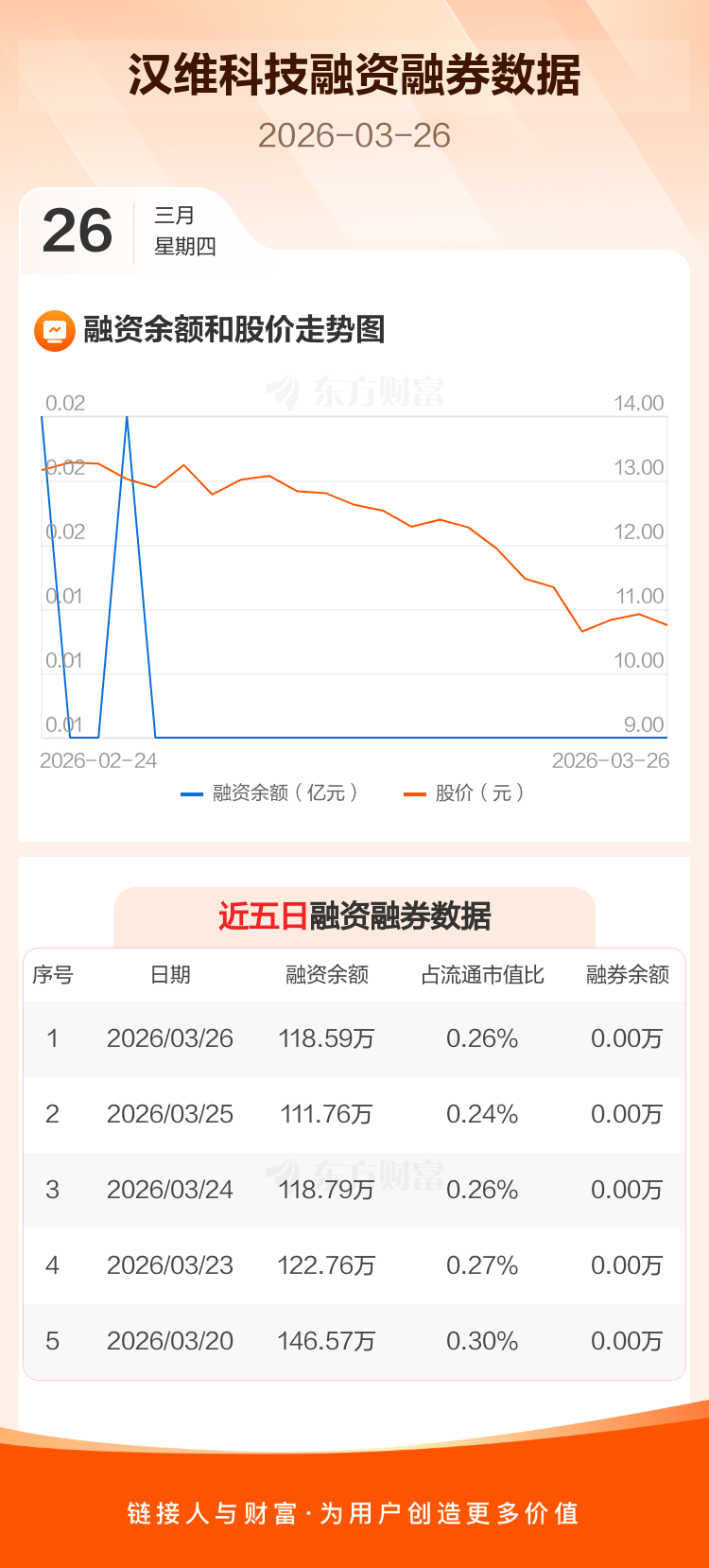交易所最新数据显示,汉维科技于2026年3月26日获融资买入63.87万元,融资偿还57.03万元,当日融资净买入6.83万元。目前,该股融资余额118.59万,占流通市值比例为0.26%。