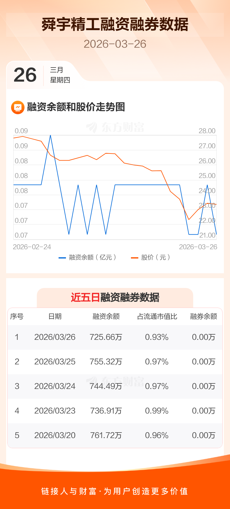 交易所最新数据显示,舜宇精工于2026年3月26日获融资买入9361元,融资偿还30.60万元,当日融资净偿还29.66万元。目前,该股融资余额725.66万,占流通市值比例为0.93%。