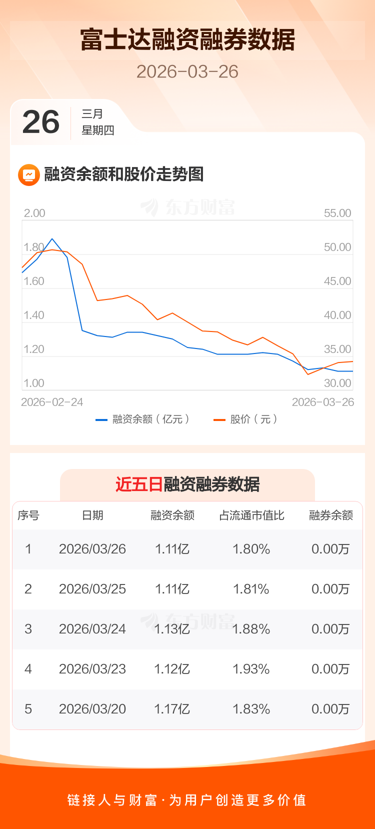 交易所最新数据显示,富士达于2026年3月26日获融资买入423.88万元,融资偿还416.44万元,当日融资净买入7.44万元。目前,该股融资余额1.11亿,占流通市值比例为1.80%。