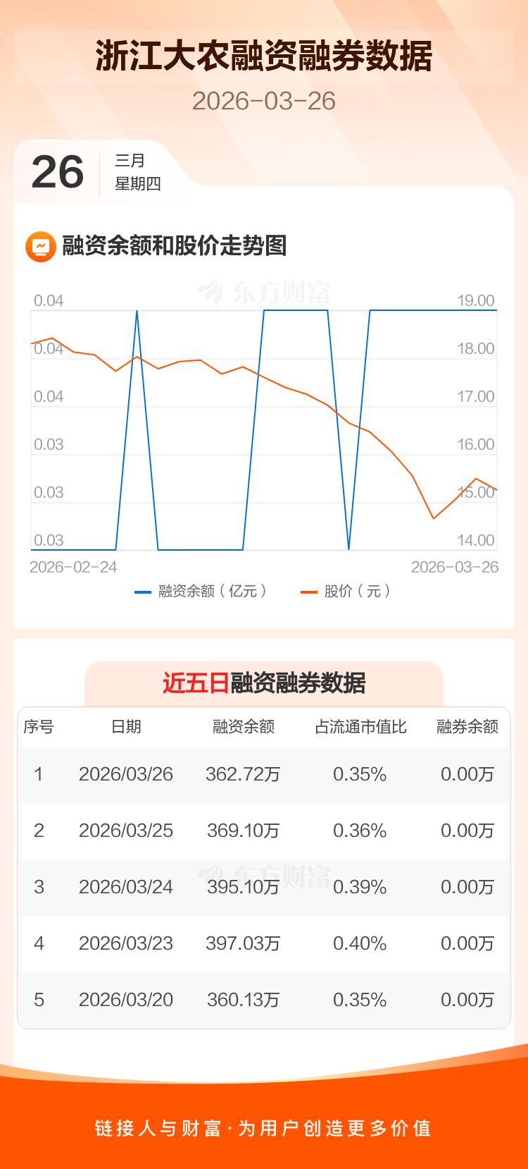 交易所最新数据显示,浙江大农于2026年3月26日获融资买入28.50万元,融资偿还34.88万元,当日融资净偿还6.38万元。目前,该股融资余额362.72万,占流通市值比例为0.35%。