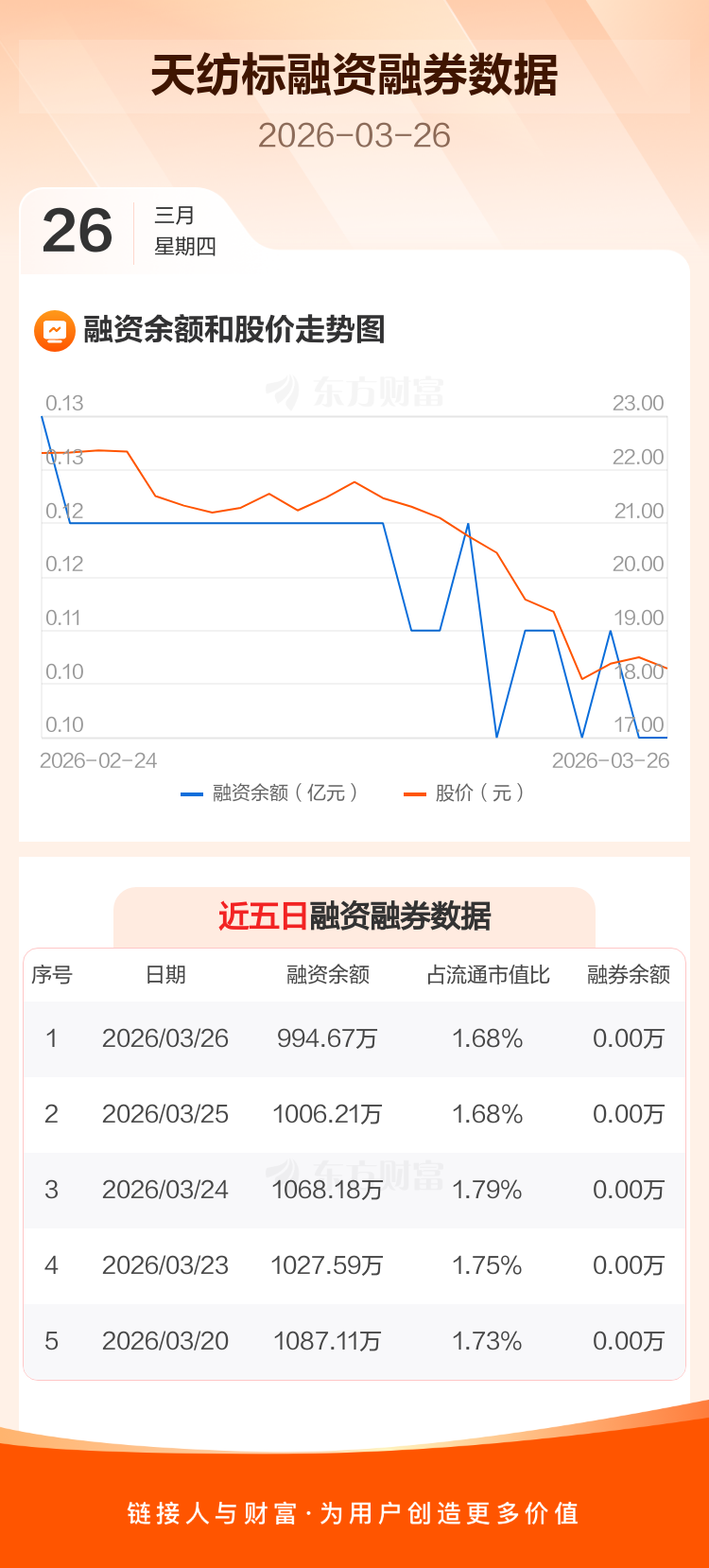 交易所最新数据显示,天纺标于2026年3月26日获融资买入19.34万元,融资偿还30.89万元,当日融资净偿还11.54万元。目前,该股融资余额994.67万,占流通市值比例为1.68%。