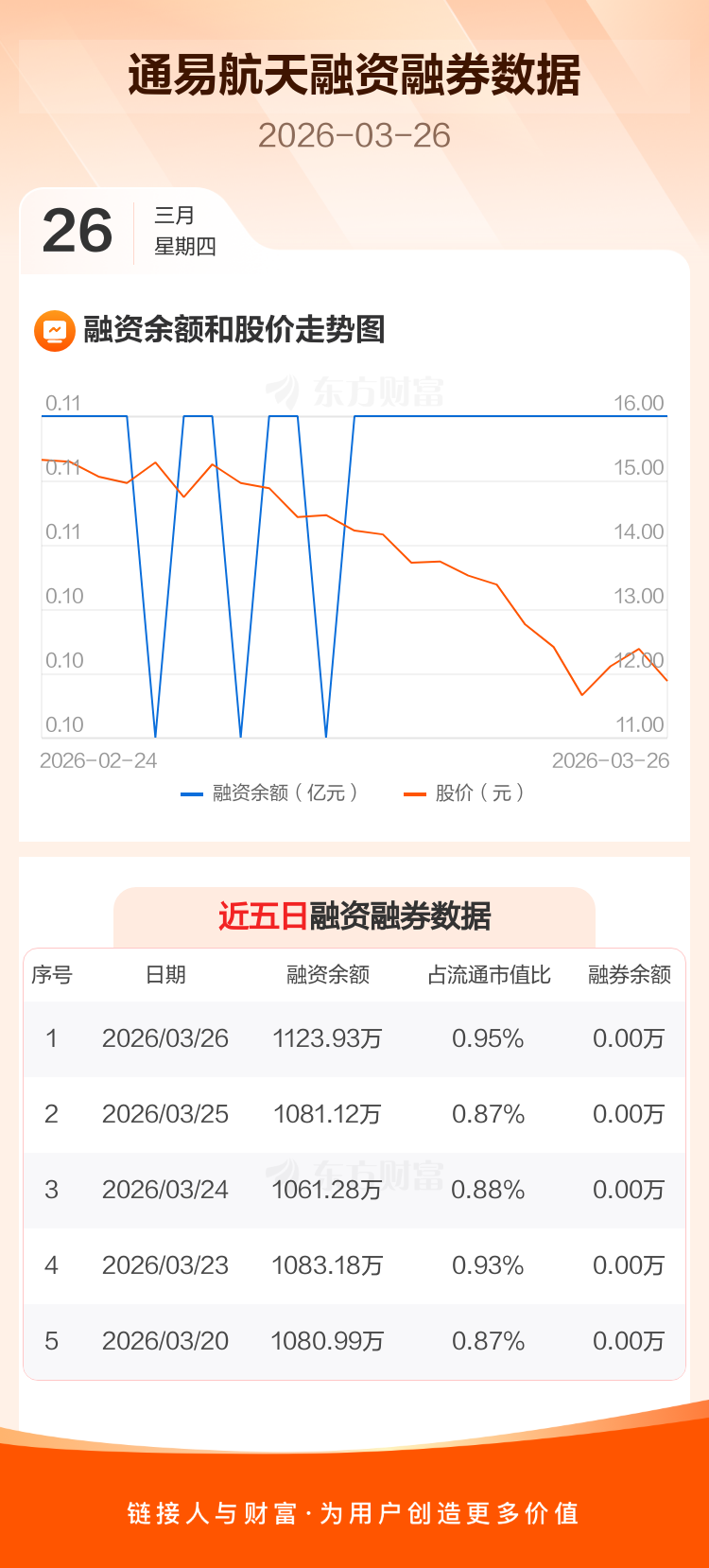 交易所最新数据显示,通易航天于2026年3月26日获融资买入44.85万元,融资偿还2.04万元,当日融资净买入42.81万元。目前,该股融资余额1123.93万,占流通市值比例为0.95%。