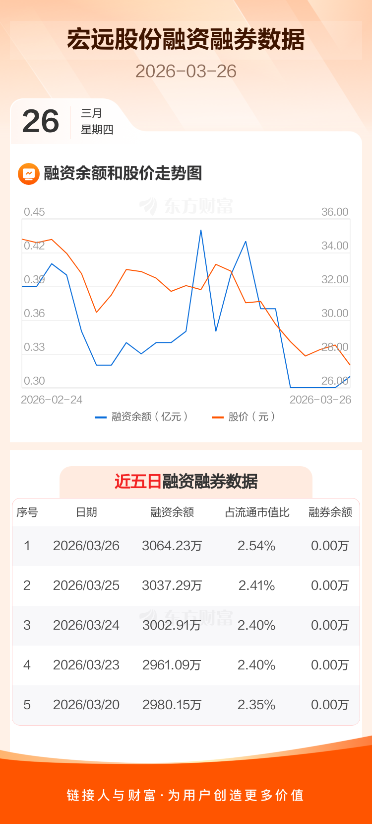 宏远股份:融资净买入26.95万元,融资余额3064.23万元