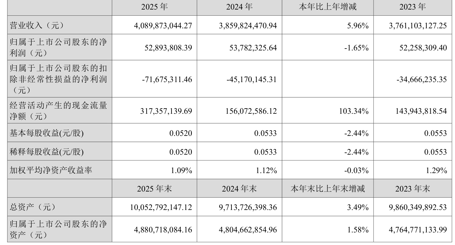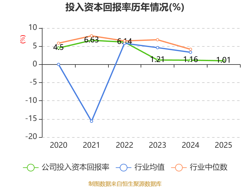 数据显示,2025年公司加权平均净资产收益率为1.09%,较上年同期下降0.03个百分点。公司2025年投入资本回报率为1.01%,较上年同期下降0.15个百分点。
